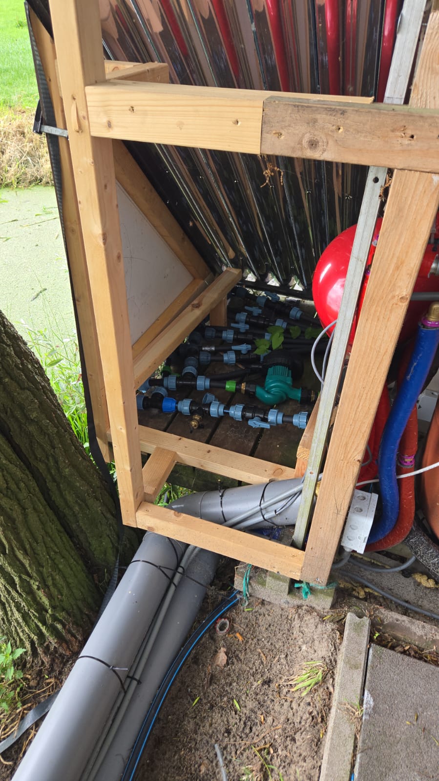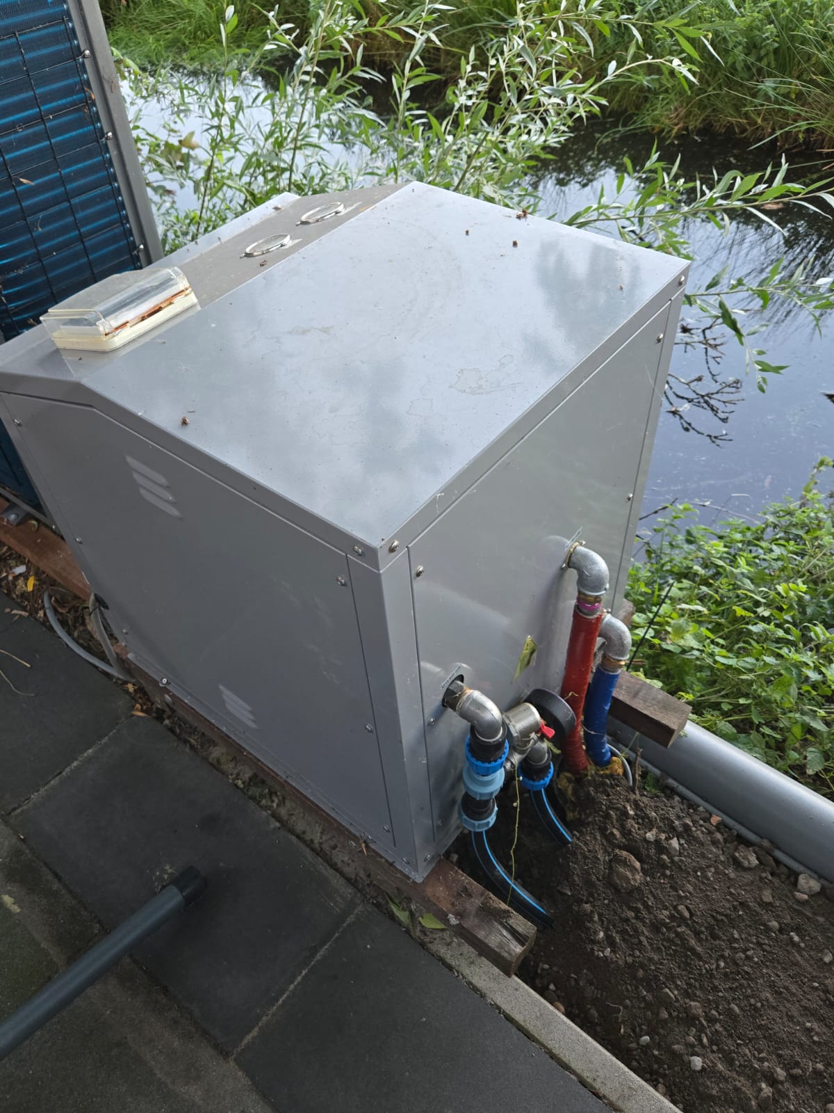 In mijn eigen project heb ik, onder de bodem van de sloot, zo’n 800 meter tyleenleiding aangelegd. Door het stromende water uit de Klijnsmavaart wordt warmte onttrokken, die via een water-water-warmtepomp ons huis en douchewater verwarmt.