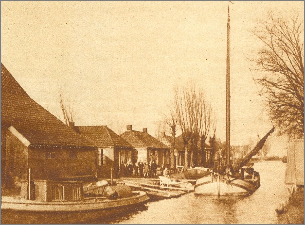 Hier werden turfschepen geschut tussen de Pier Christiaansloot en de Klijnsmavaart om hun lading richting het Tjeukemeer te brengen. Langs de oevers lagen stapels turf te drogen, klaar om ingeladen te worden in de Friese pramen en skûtsjes die de brandstof naar de stad brachten.