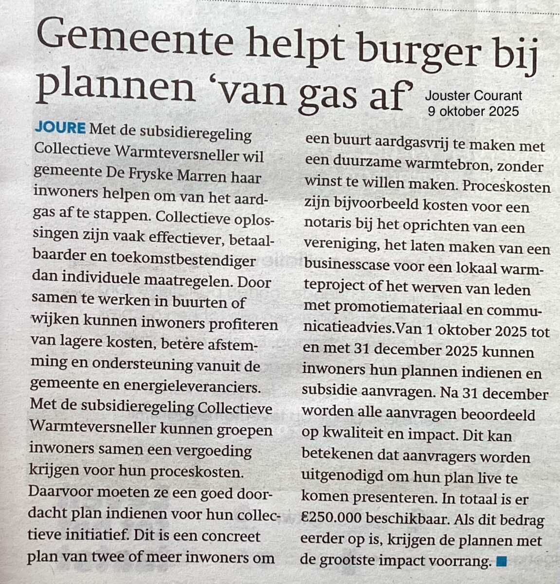 🌿 Gemeente helpt inwoners bij plannen ‘van het gas af’